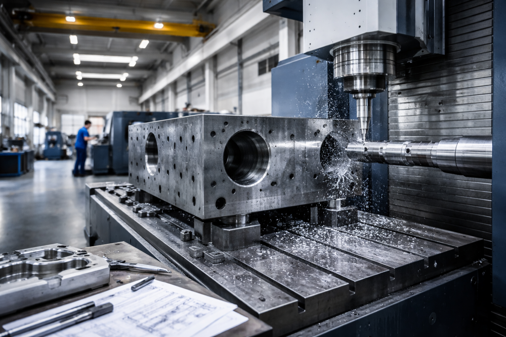 Mit moderner Bohrwerksarbeit bearbeiten wir große und schwere Werkstücke präzise und zuverlässig – ideal für Anwendungen im Maschinen- und Anlagenbau.